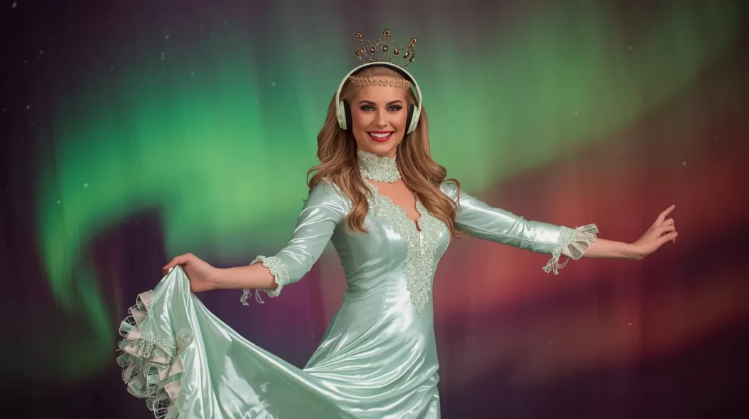 Ночь стояла ясной, как лёд над глубоким озером. На столе у Игоря мягко светилась хрустальная Венера, и сквозь её тело струились зелёные, синие, фиолетовые нити — Северное сияние играло в кристалле, как музыка в стеклянной арфе. В этот миг из окна шагнула Она — Королева Северного Сияния. Её платье было соткано из дорожек неба, а голос — из тишины, где всё становится понятным.